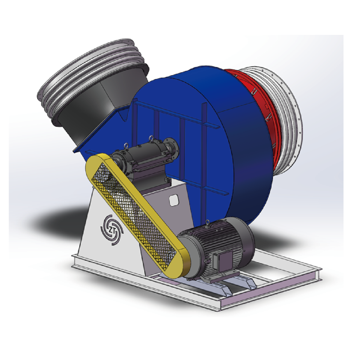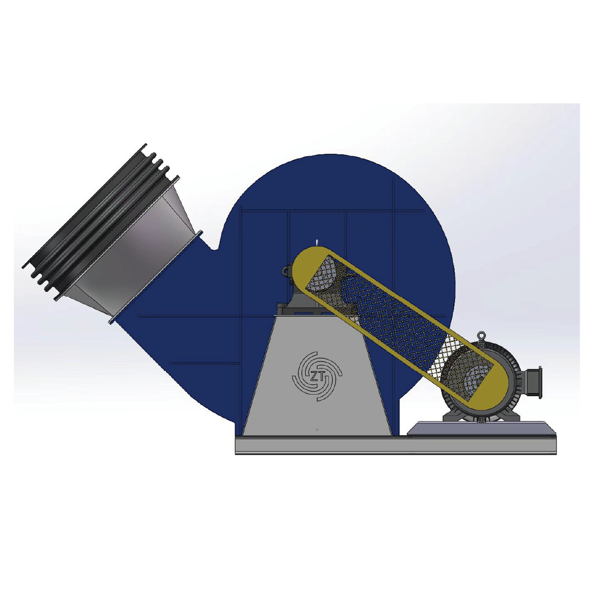 The impeller is connected with the motor through the transmission case and V-belt pulley. The transmission loss is about 0.95. High temperature, corrosion and other complex gas can be transported. There are a variety of materials to choose from.